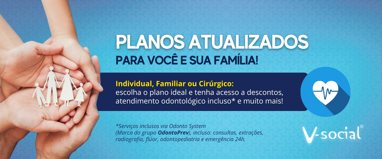 O V-Social é um projeto com iniciativa e foco na saúde da população e principalmente no social, e agora conta com os melhores parceiros e descontos especiais de até 70% em saúde, educação, lazer, farmácias, alimentação, estética e beleza, informática, academias, assessoria jurídica, serviços como consultas, exames e cirurgias; entre outras novidades que estão por vir.